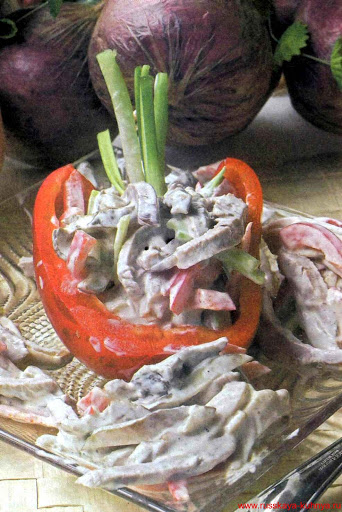 Рецепт салата строгановский назван в честь графа Строганова, который считал, что все развлечения начинаются с застолья, а застолье должно быть изысканным. Любитель экспериментов и интересных блюд, разборчивый в еде, он нанимал лучших французских поваров. Попробуйте этот русский салат, отличающийся французской изысканностью.